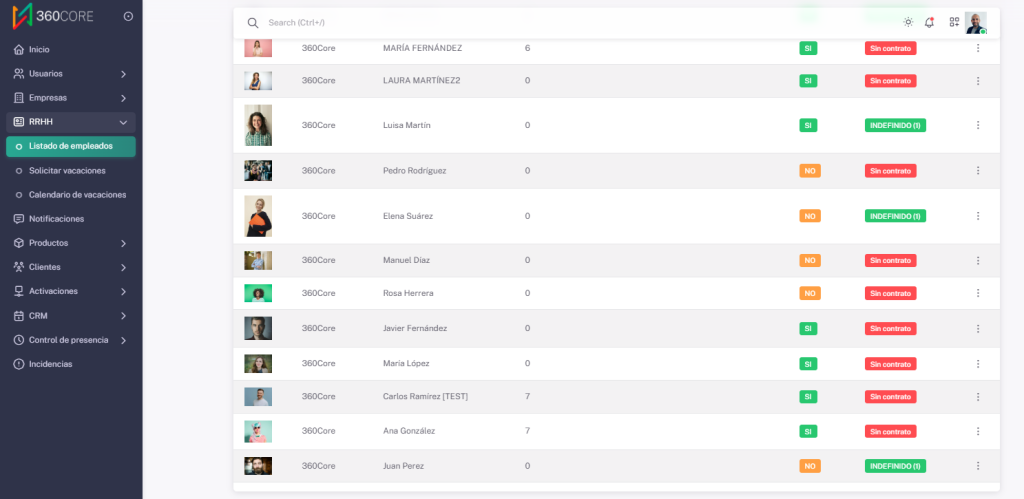 Centraliza empleados, contratos, vacaciones y control horario en una única plataforma, sin hojas de cálculo ni herramientas externas.